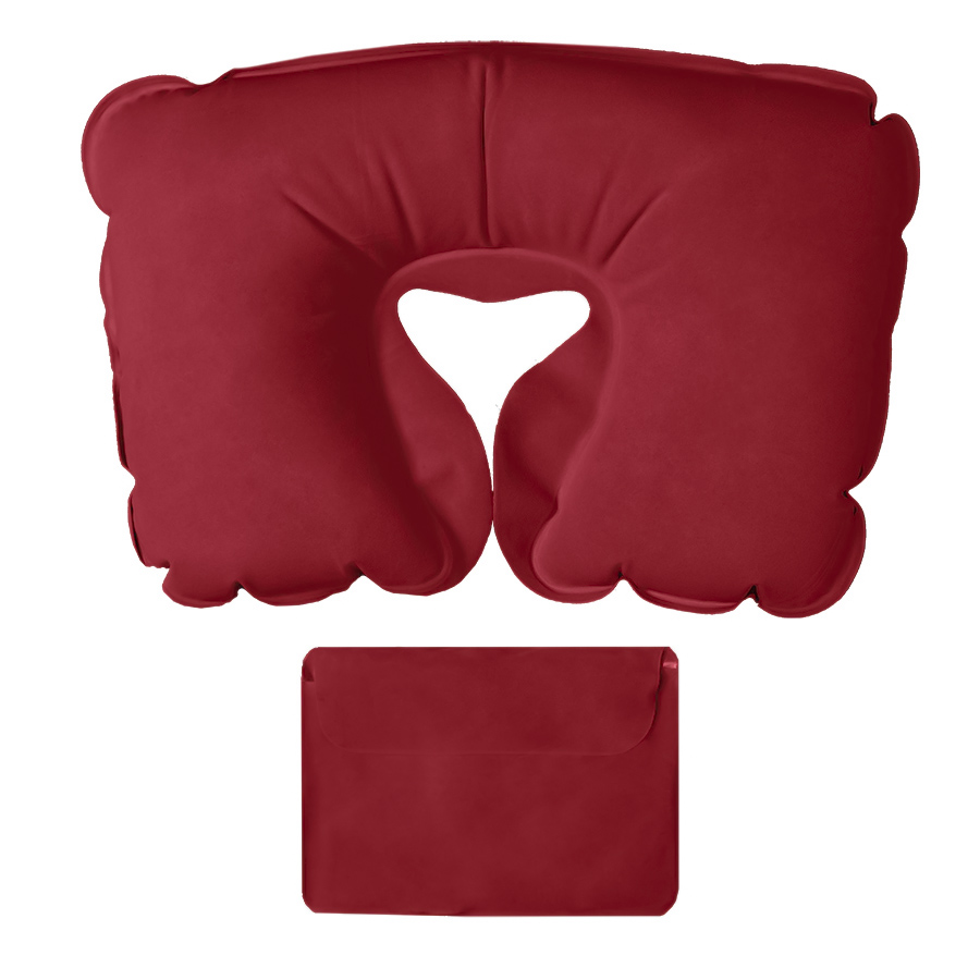 Подушка надувная дорожная WAY в футляре; красный; 43,5х27,5 см; твил с логотипом компании - отличный способ заявить вашу корпоративную идентичность.