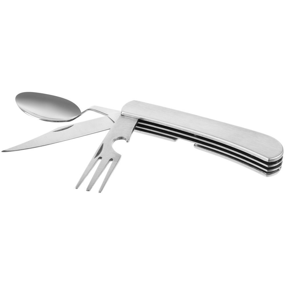Походный складной столовый прибор Campsite Fold, стальной с логотипом компании - отличный способ заявить вашу корпоративную идентичность.