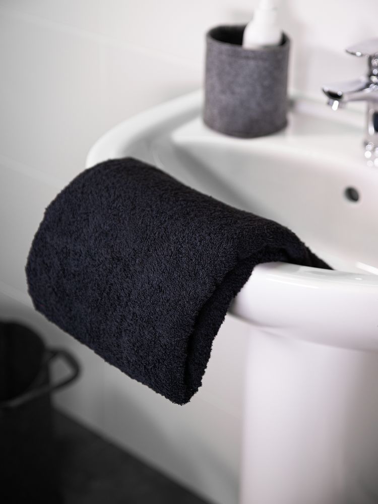 Полотенце Odelle, большое, черное с логотипом компании - отличный способ заявить вашу корпоративную идентичность.