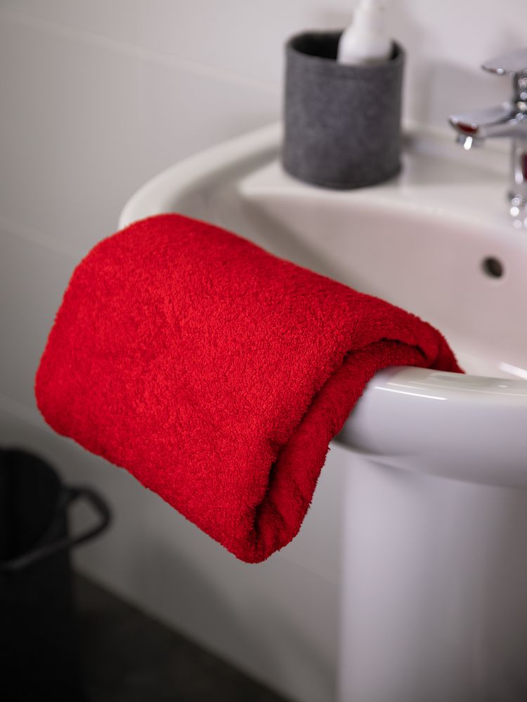 Полотенце Odelle, большое, красное с логотипом компании - отличный способ заявить вашу корпоративную идентичность.