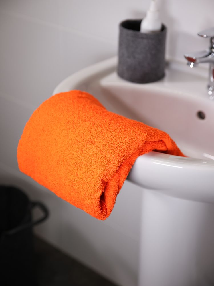 Полотенце Odelle, большое, оранжевое с логотипом компании - отличный способ заявить вашу корпоративную идентичность.