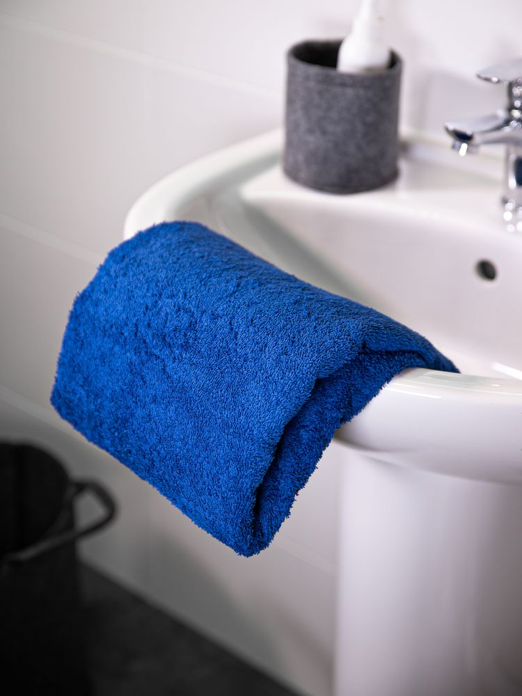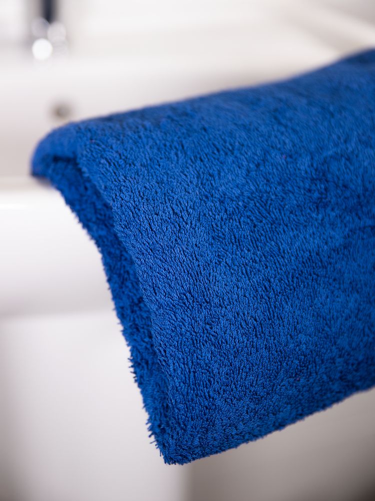 Полотенце Odelle, большое, ярко-синее с логотипом компании - отличный способ заявить вашу корпоративную идентичность.