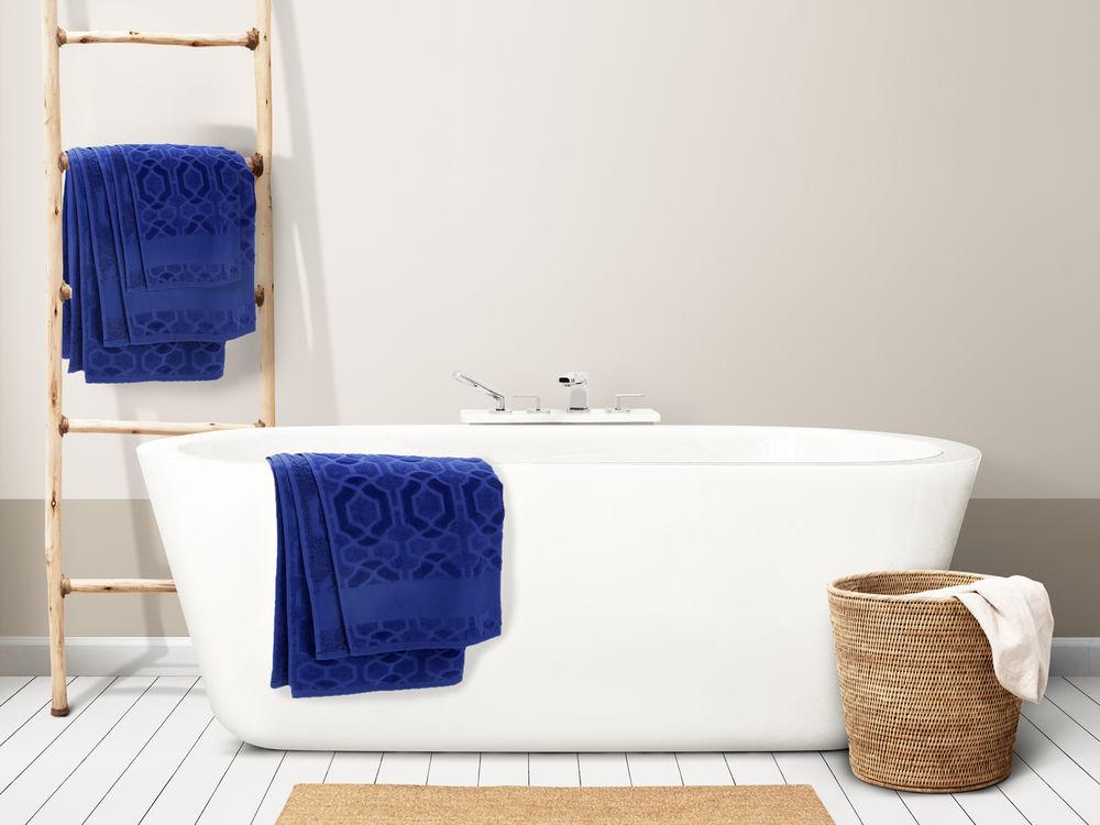 Полотенце Velin, большое, синее с логотипом компании - отличный способ заявить вашу корпоративную идентичность.