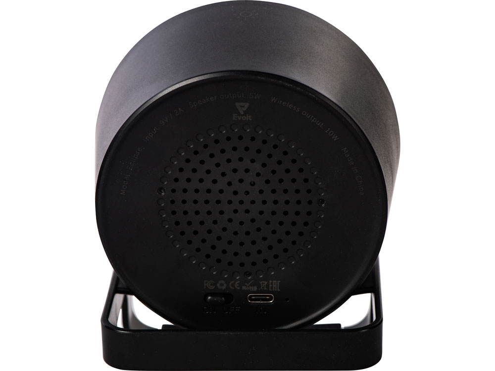 Портативная колонка c функцией беспроводной зарядки Eclipse, 5 Вт / 10 Вт с логотипом компании - отличный способ заявить вашу корпоративную идентичность.