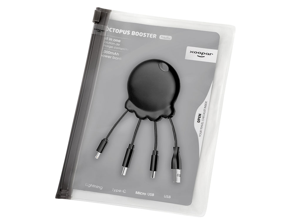 Портативное зарядное устройство Octopus Booster, 1000 mAh, черный с логотипом компании - отличный способ заявить вашу корпоративную идентичность.