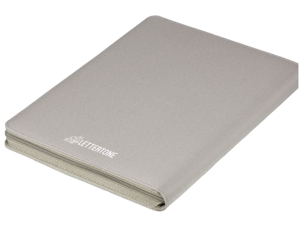 Компания «Эклектика BY» осуществляет нанесение логотипа на сувенирную продукцию: Портфолио А4 из RPET на молнии Harvey, 40 л FSC бумаги, серый. Арт. 428852