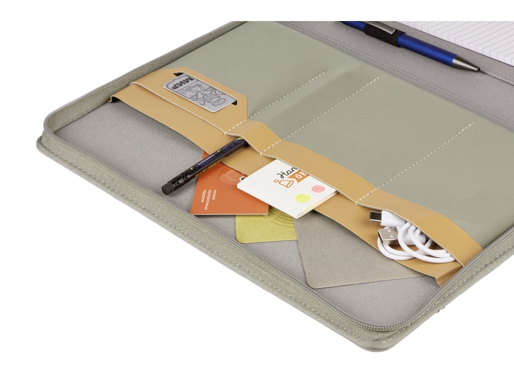 Также есть петля для ручки и карманы для телефона, проводов, банковских карточек и/или визиток и даже для планшета.