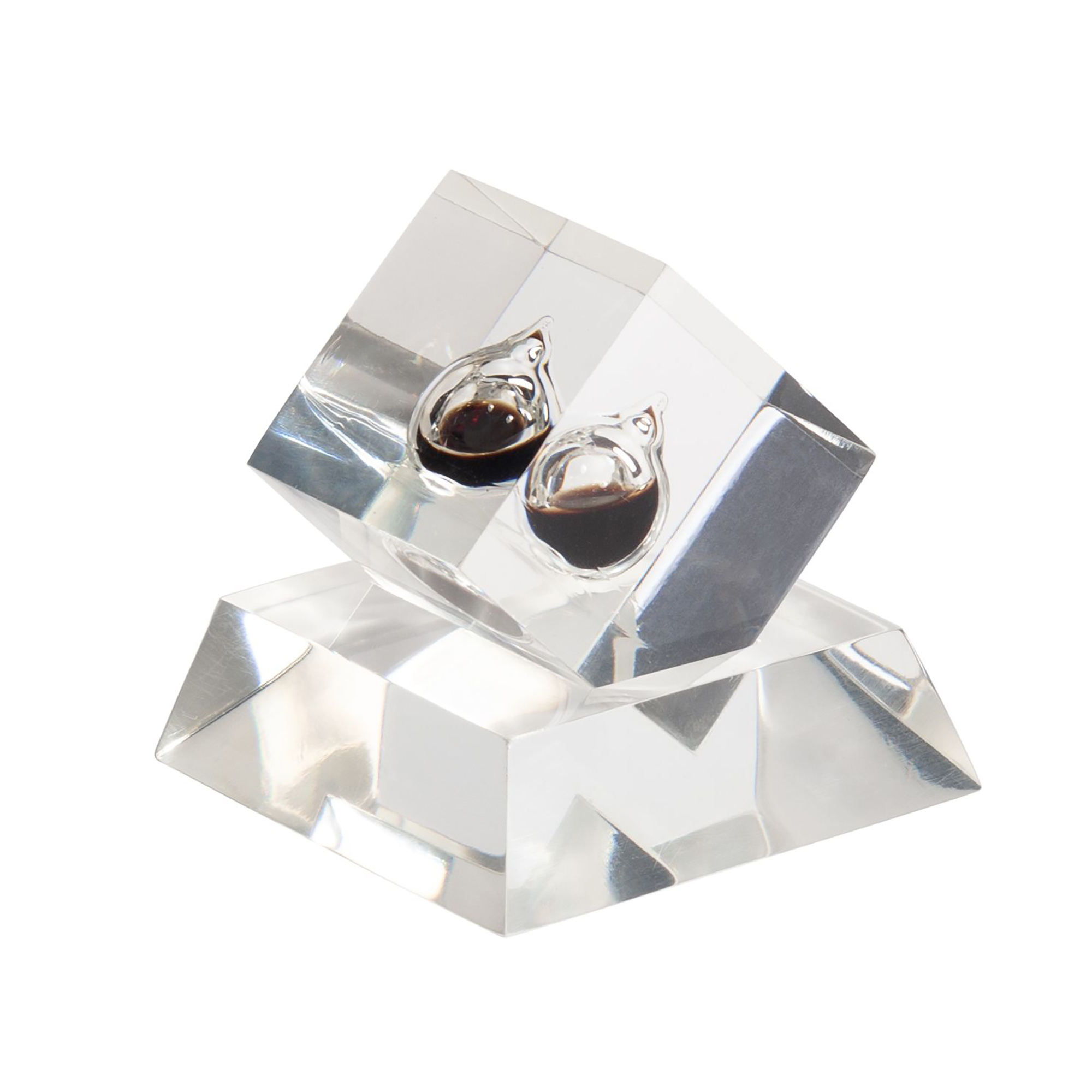 Пресс-папье с чёрной каплей нефти на прозрачной подставке. Съмное основание 5,2 х h 1,5 х 5,2 см, куб 3,2 х 3,2 х 3,2 см,