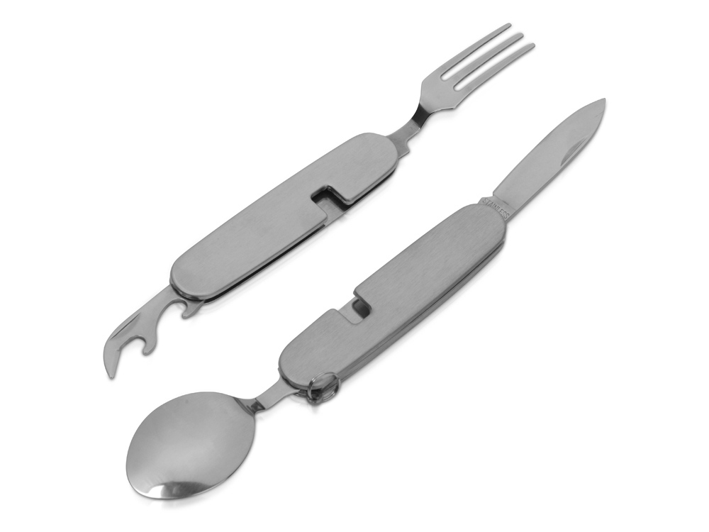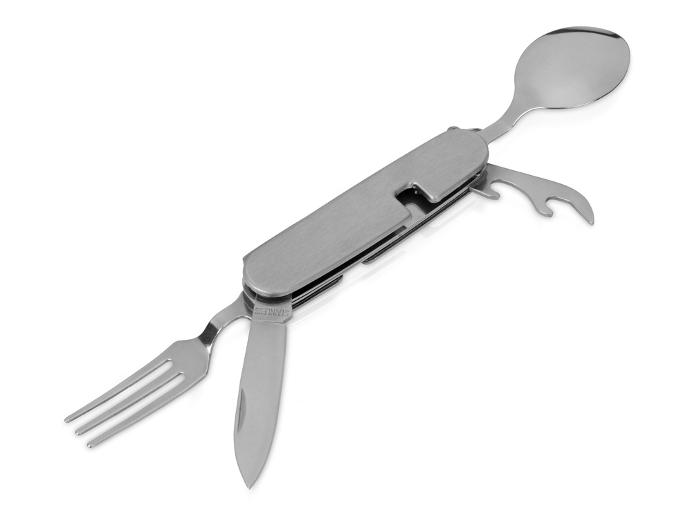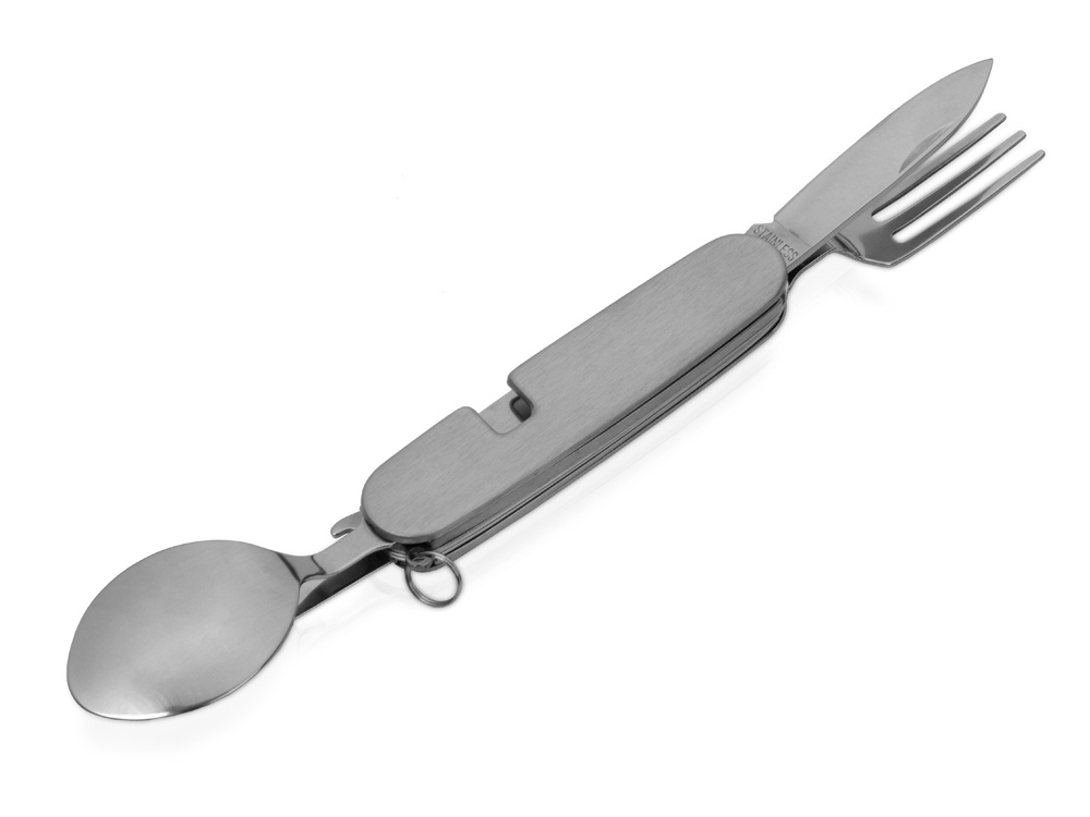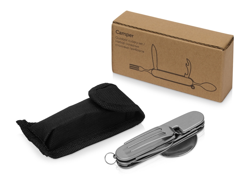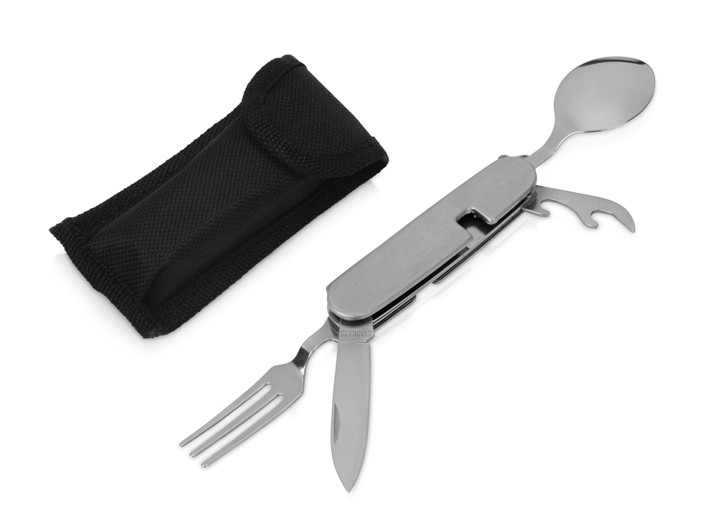Компания «Эклектика BY» осуществляет нанесение логотипа на сувенирную продукцию: Приборы Camper 4 в 1 в чехле: вилка, ложка, нож, открывалка. Арт. 422738