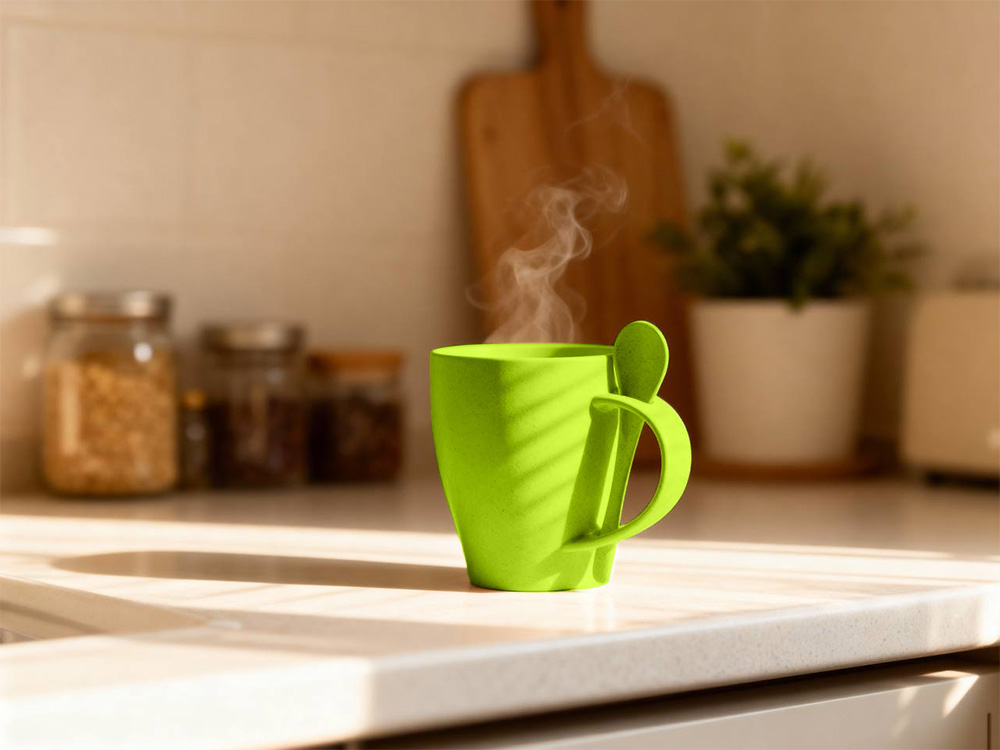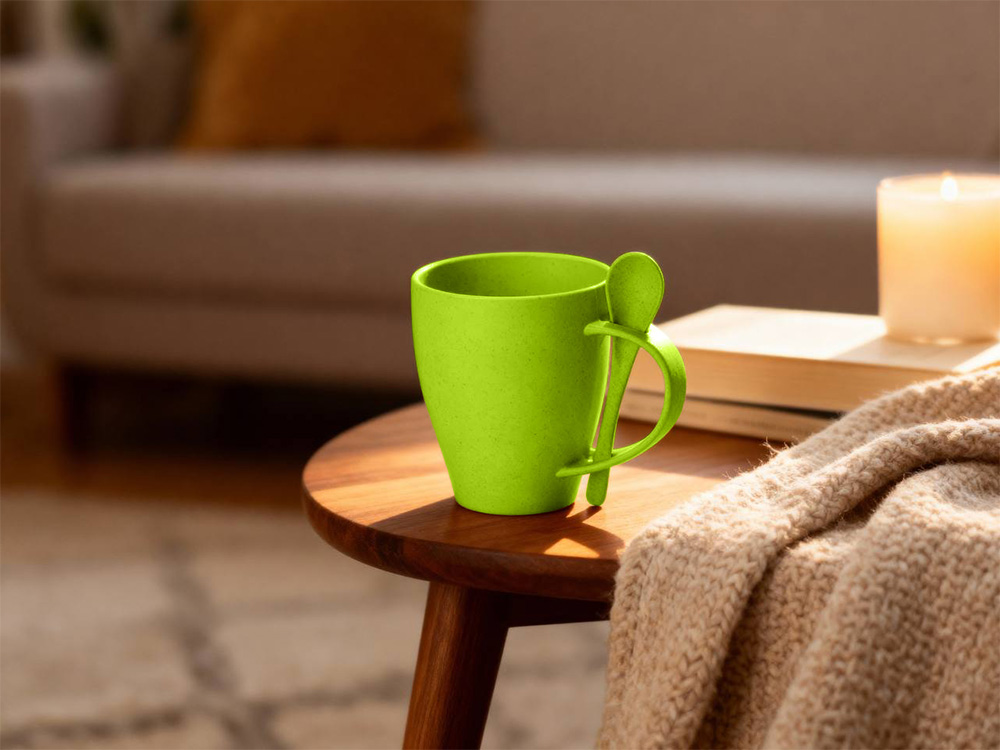 Пшеничная кружка Nina с ложкой, 300ml зеленое яблоко 375C с логотипом компании - отличный способ заявить вашу корпоративную идентичность.