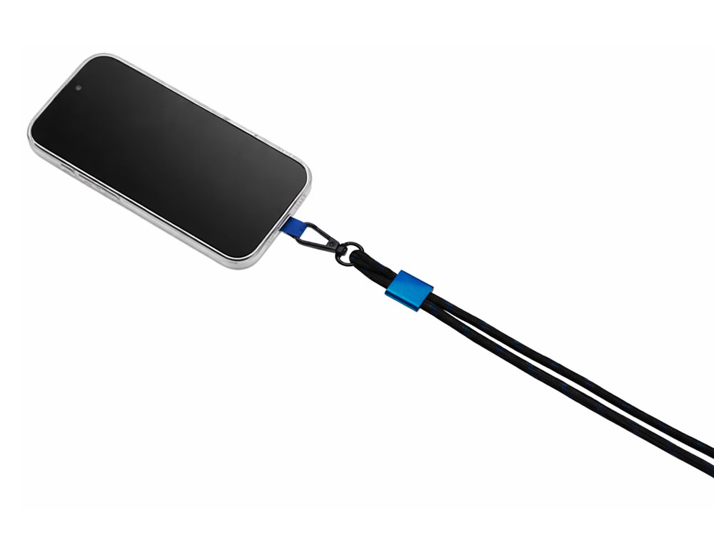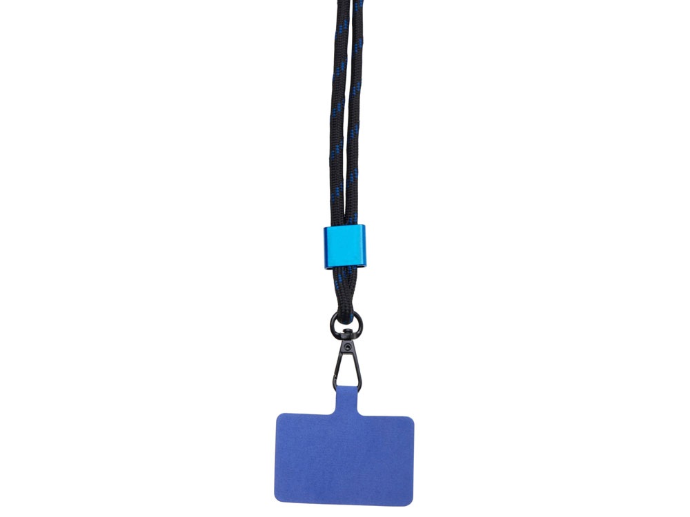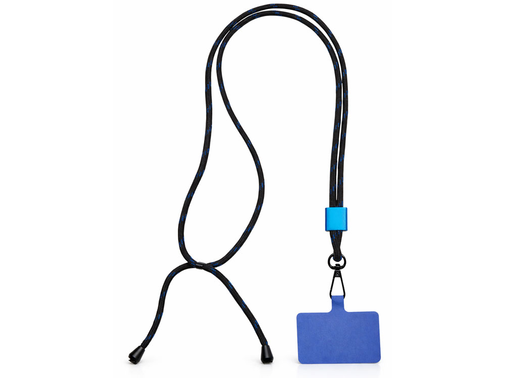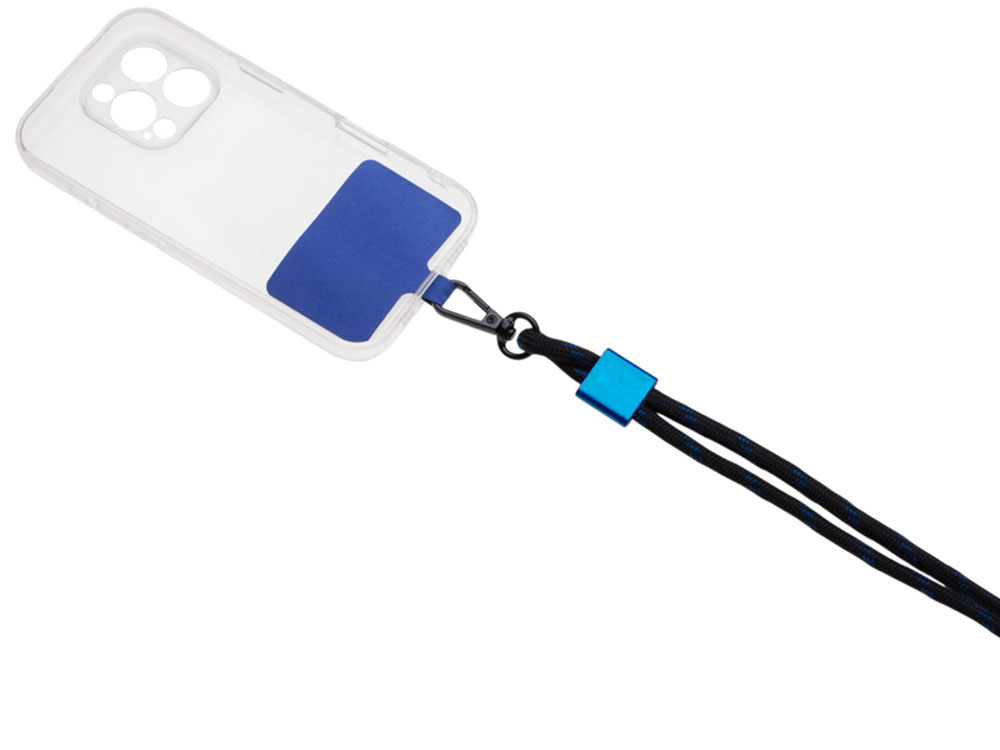 Ремешок на шею для телефона Риксо, синий/черный с логотипом компании - отличный способ заявить вашу корпоративную идентичность.