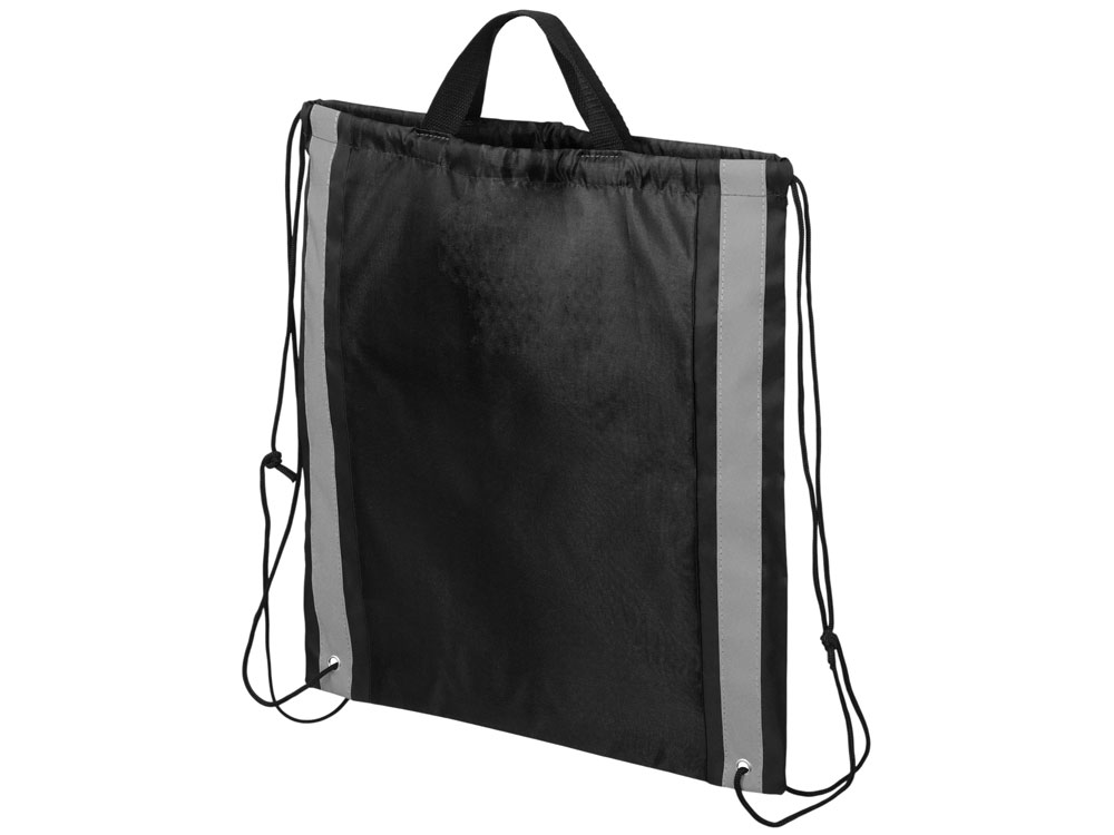 Рюкзак-мешок Savy со светоотражающими полосами по бокам, черный с логотипом компании - отличный способ заявить вашу корпоративную идентичность.