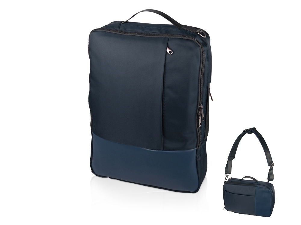 Рюкзак-трансформер Duty для ноутбука, темно-синий (без шильда) с логотипом компании - отличный способ заявить вашу корпоративную идентичность.