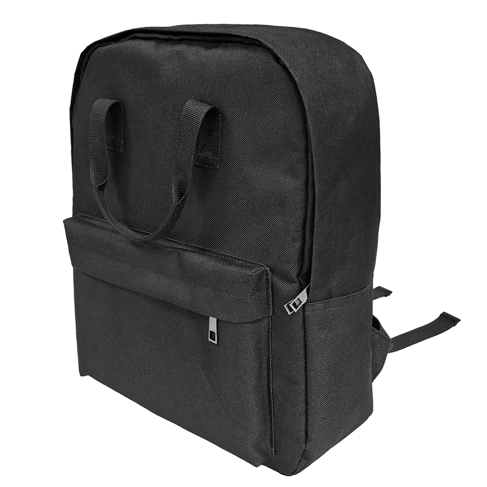 Одно основное отделение и объемный передний карман закрываются на скрытые молнии, что предотвращает попадание внутрь дождя и снега. Две короткие ручки и уплотнённые регулируемые по длине плечевые ремни. Уплотнённая задняя стенка.