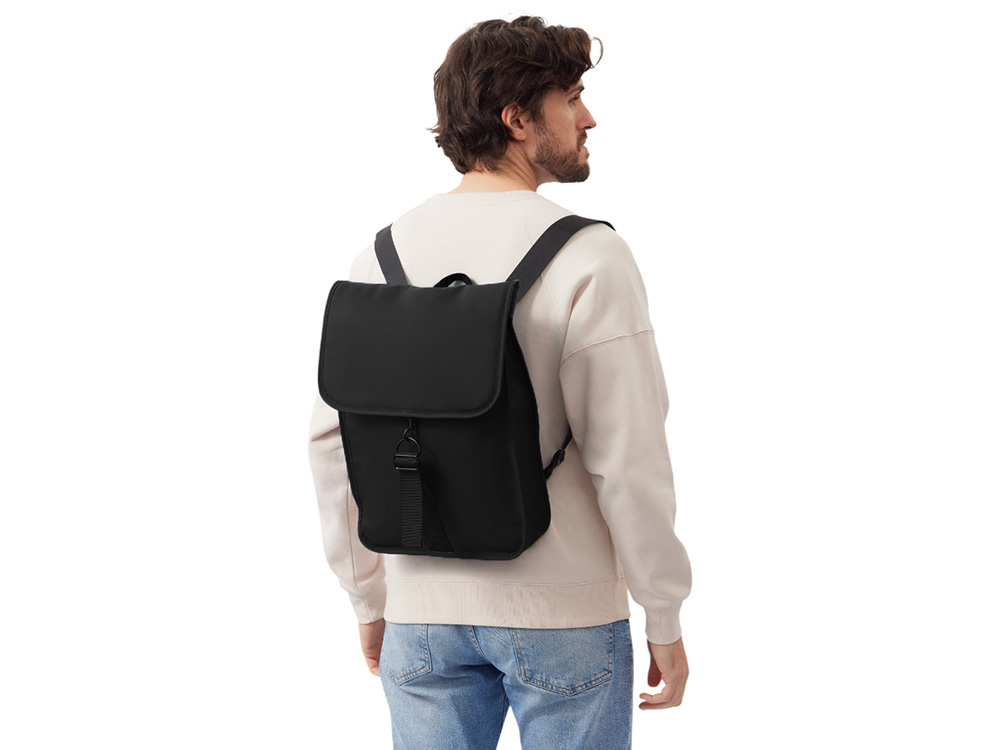 Этот бизнес-рюкзак из приятной на ощупь ПУ кожи удобен для передвижения с гаджетами по городу. Рюкзак оснащен всем необходимым для комфортного использования: застежка-карабин с регулировкой наполняемости рюкзака, регулируемые по длине лямки, карман для ноутбука внутри, ремень для крепления на ручку чемодана снаружи.