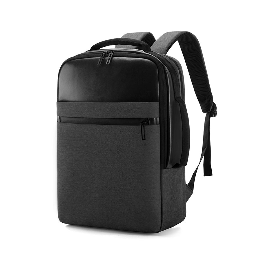 Верх рюкзака и часть передней стенки из высококачественной искусственной кожи надёжно защищают содержимое от попадания внутрь влаги. Два отделения закрываются на молнии со скрытым звеном.