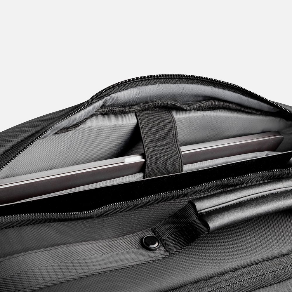- Два отделения на молнии: первое — для документов с усиленным карманом под ноутбук, второе — объемное отделение для вещей с панелью?органайзером и внутренним карманом на молнии