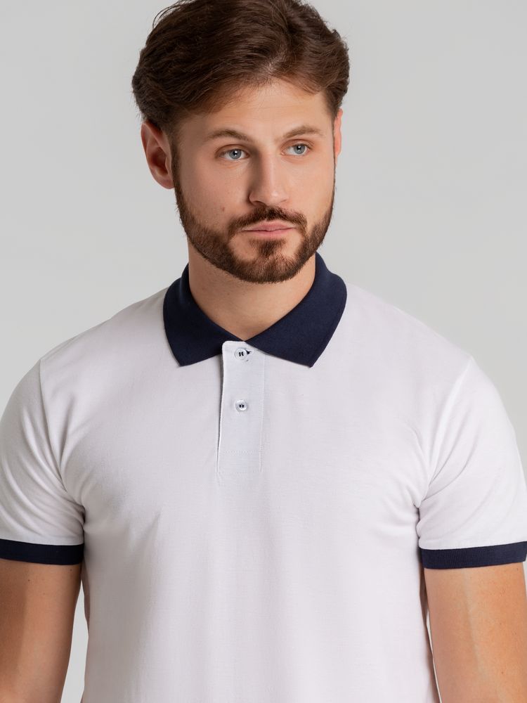Рубашка поло Prince 190 белая с темно-синим, размер XS с логотипом компании - отличный способ заявить вашу корпоративную идентичность.