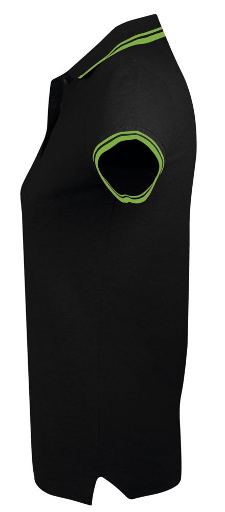 Рубашка поло женская Pasadena Women 200 с контрастной отделкой, черный/зеленый, размер S
