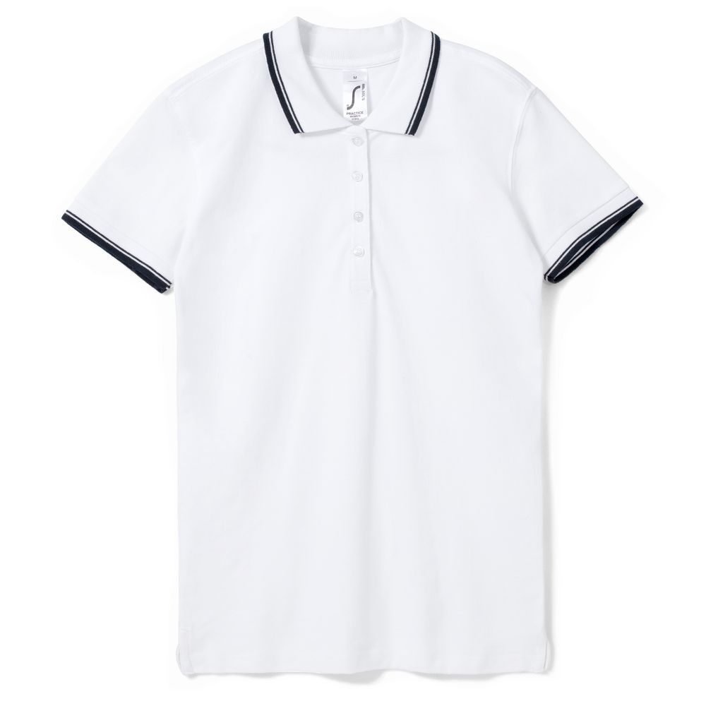 Рубашка поло женская Practice Women 270, белая с темно-синим с логотипом компании - отличный способ заявить вашу корпоративную идентичность.