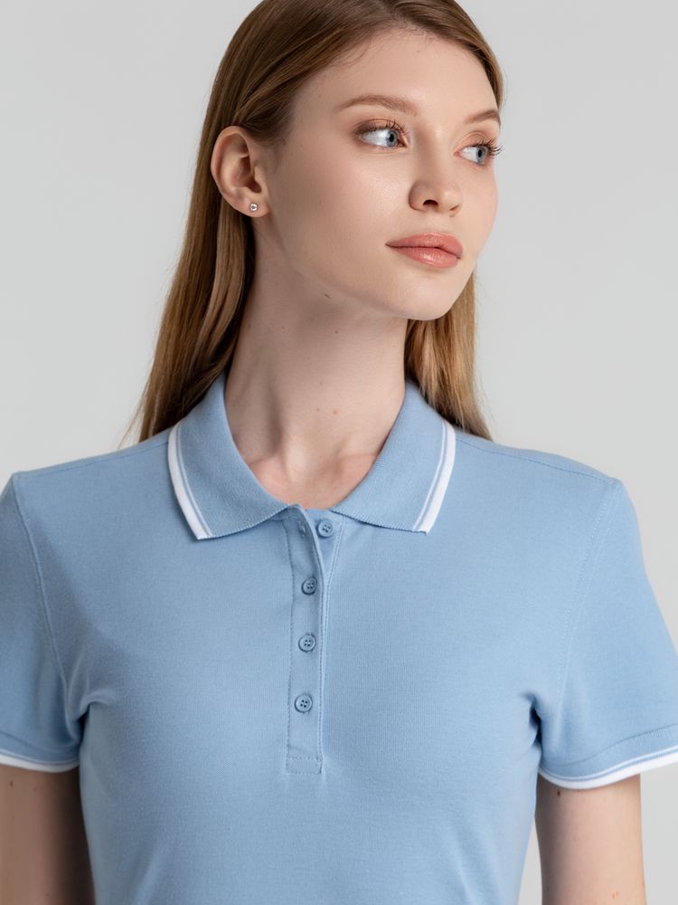 Компания «Эклектика BY» осуществляет нанесение логотипа на сувенирную продукцию: Рубашка поло женская Practice women 270 голубая с белым, размер L. Арт. 102986