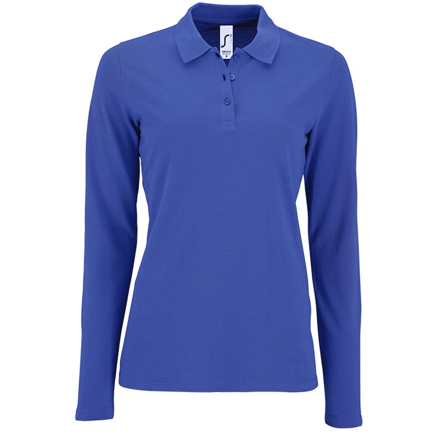 Рубашка поло женская с длинным рукавом Perfect LSL Women, ярко-синяя с логотипом компании - отличный способ заявить вашу корпоративную идентичность.