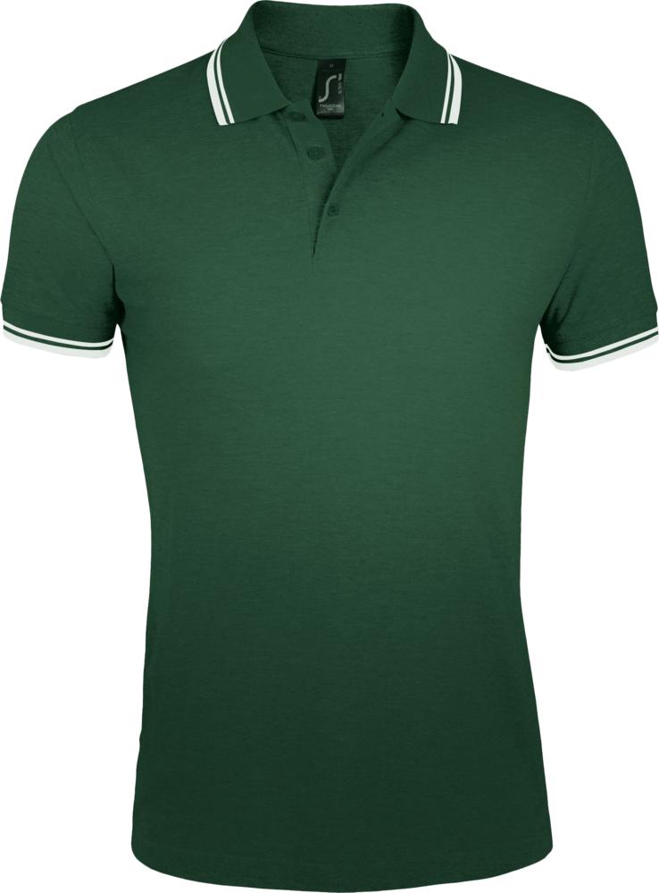 Рубашка поло мужская Pasadena Men 200 с контрастной отделкой, зеленая с белым с логотипом компании - отличный способ заявить вашу корпоративную идентичность.