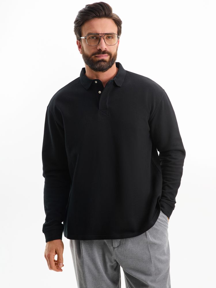 Главная ->Корпоративные подарки и рекламные сувениры на складе -> Promo одежда и аксессуары -> Поло -> Рубашка поло оверсайз с длинным рукавом Heritage, черная, размер XL