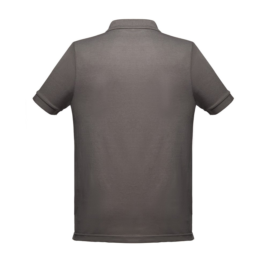 Мужская рубашка-поло из смесовой ткани-пике. Полотно футболки упругое и гладкое благодаря обработке ферментами "enzyme wash" и сохраняет форму при стирке. Модель полуприлегающего силуэта. Благодаря манжете из риба 1х1 рукав смотрится очень аккуратно. Воротник также выполнен из риба 1х1, внутри ворота - укрепляющая тесьма по горловине. Планка с 3 пуговицами в тон изделия. запасная пуговица на ярлыке во внутреннем боковом шве.