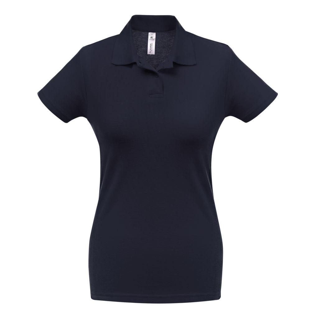 Рубашка поло женская ID.001 темно-синяя с логотипом компании - отличный способ заявить вашу корпоративную идентичность.