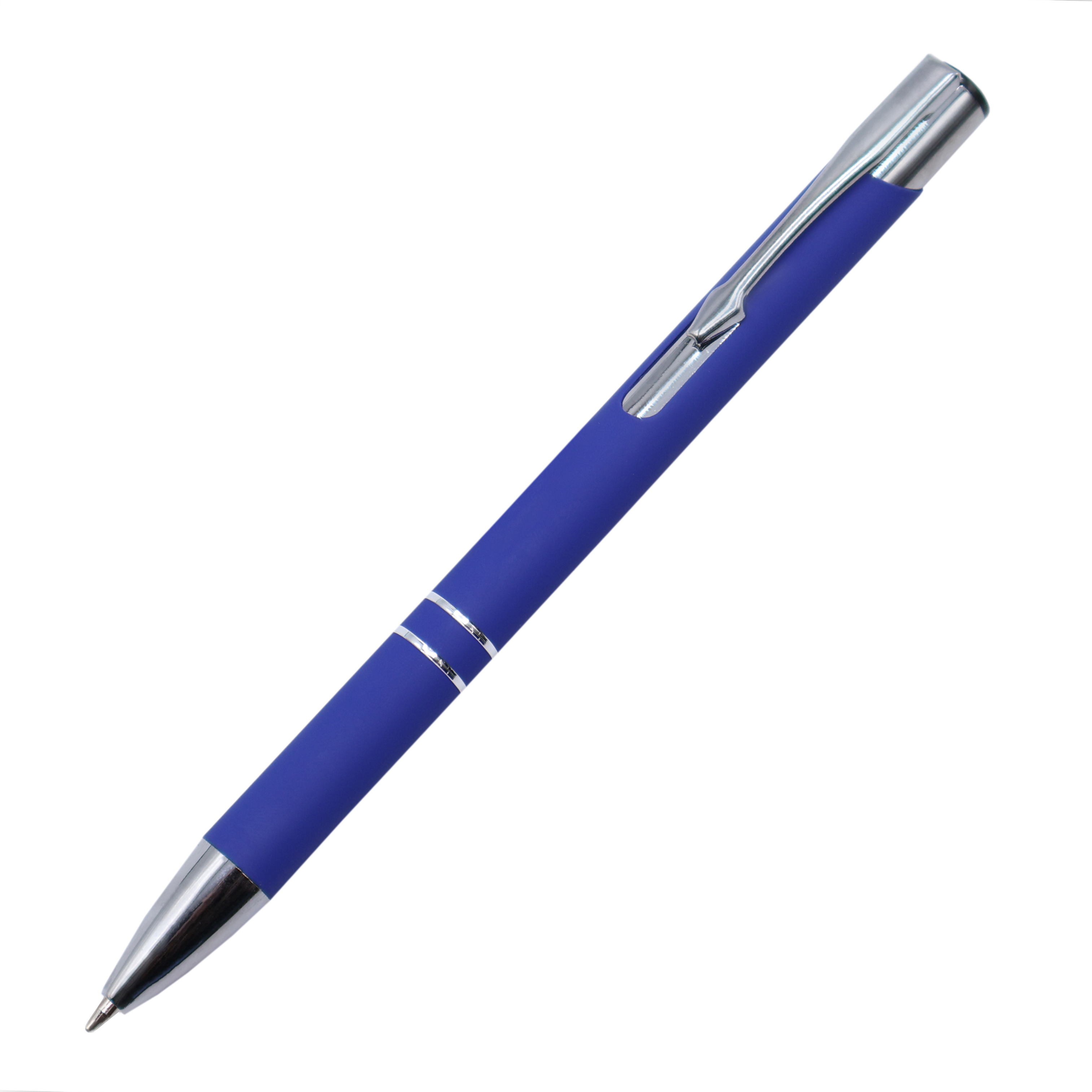 Ручка металлическая Molly софт-тач, ярко-синяя с логотипом компании - отличный способ заявить вашу корпоративную идентичность.