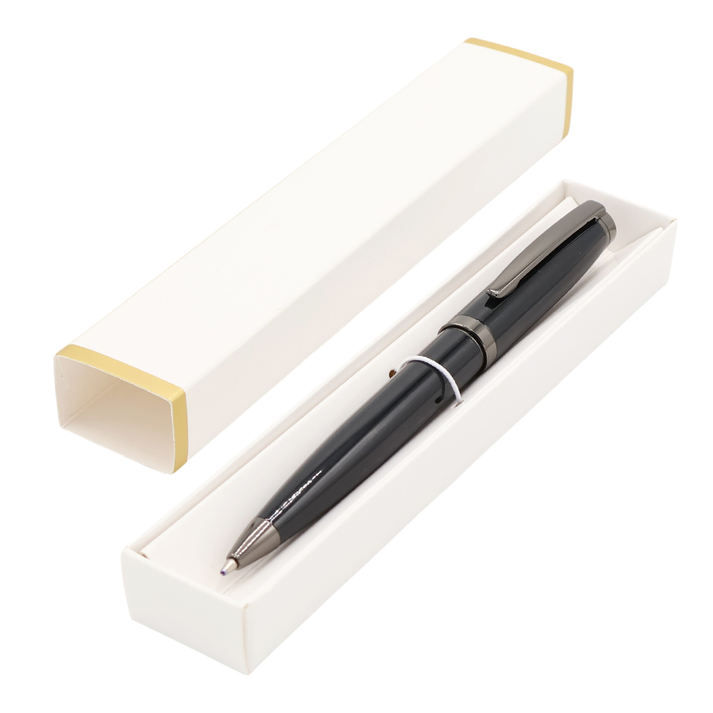 Ручка Betty в коробке Cradle белой с позолотой, чёрная с логотипом компании - отличный способ заявить вашу корпоративную идентичность.