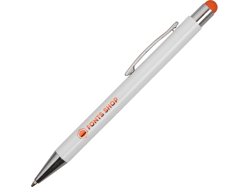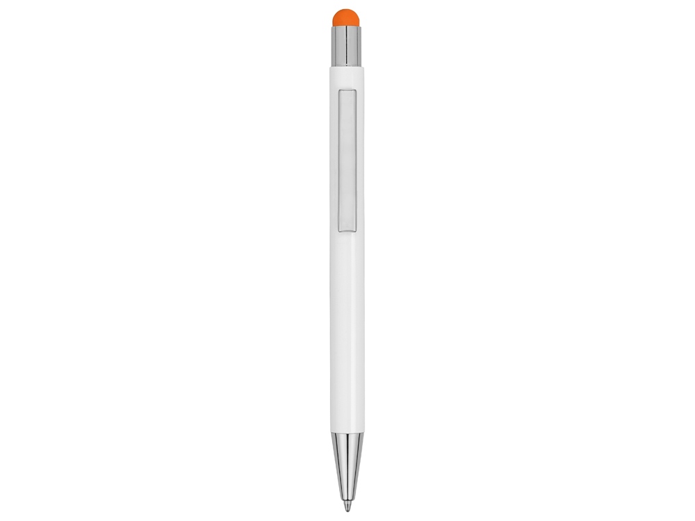 Ручка металлическая шариковая Flowery со стилусом и цветным зеркальным слоем, белый/оранжевый с логотипом компании - отличный способ заявить вашу корпоративную идентичность.
