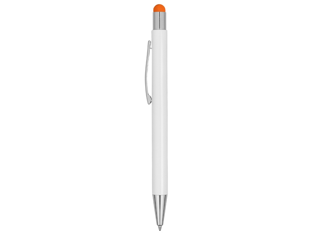 Ручка металлическая шариковая Flowery со стилусом и цветным зеркальным слоем, белый/оранжевый