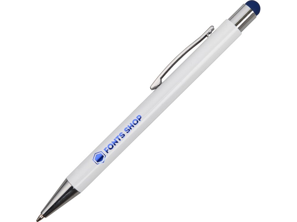Ручка металлическая шариковая Flowery со стилусом и цветным зеркальным слоем, белый/синий с логотипом компании - отличный способ заявить вашу корпоративную идентичность.