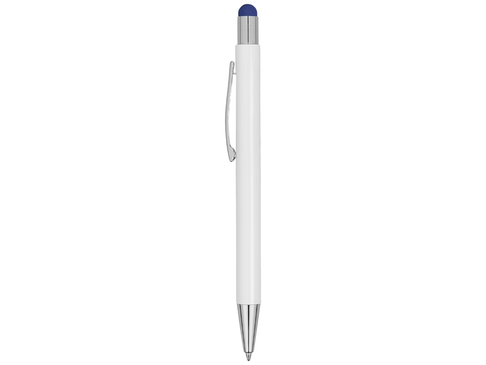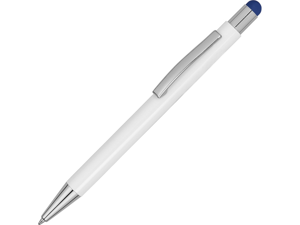 Ручка металлическая шариковая Flowery со стилусом и цветным зеркальным слоем, белый/синий