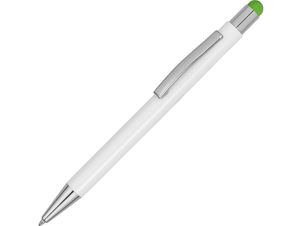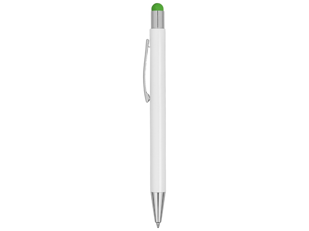 Ручка металлическая шариковая Flowery со стилусом и цветным зеркальным слоем, белый/зеленое яблоко