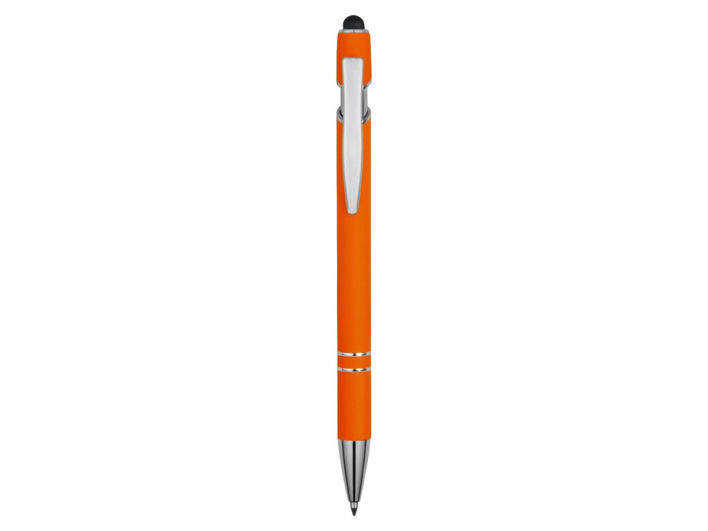 Ручка металлическая soft-touch шариковая со стилусом Sway, оранжевый/серебристый с логотипом компании - отличный способ заявить вашу корпоративную идентичность.