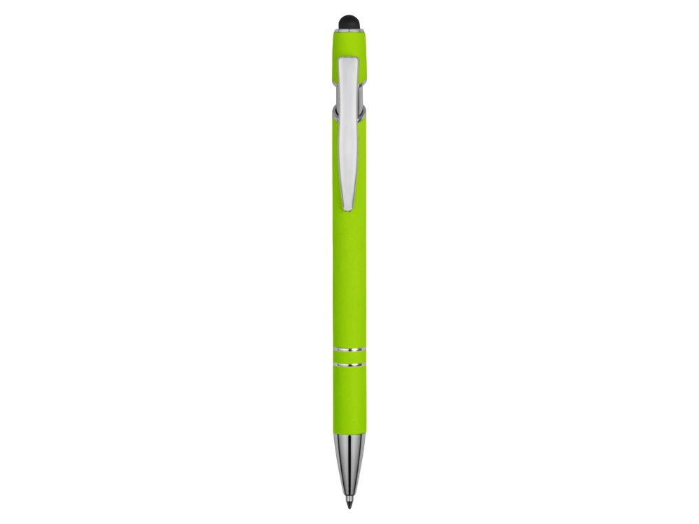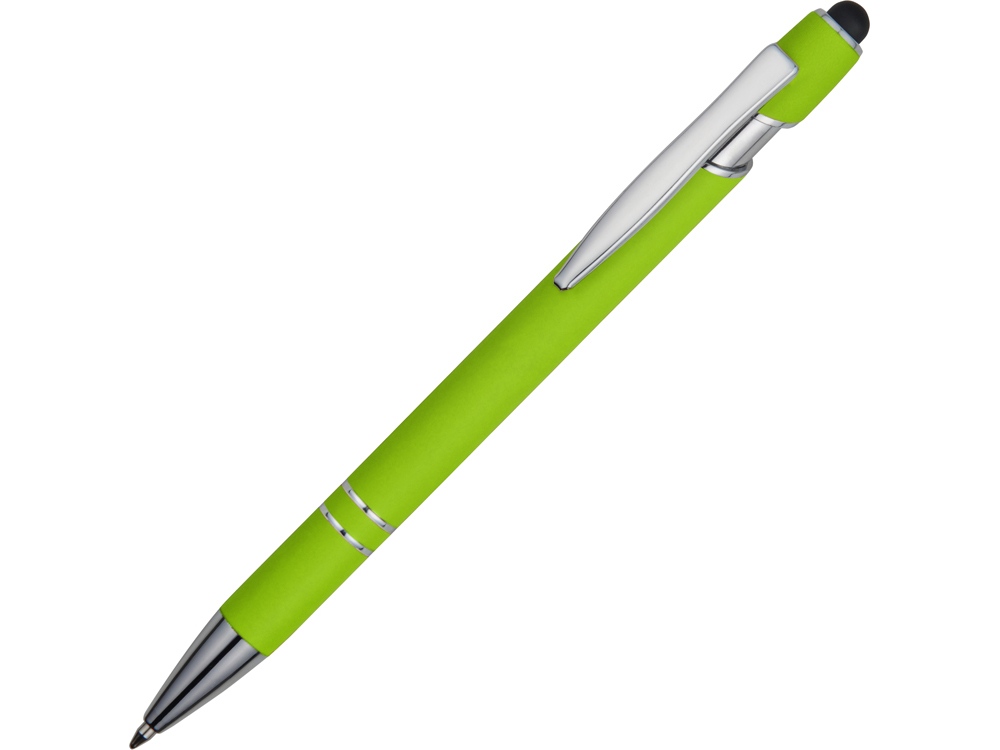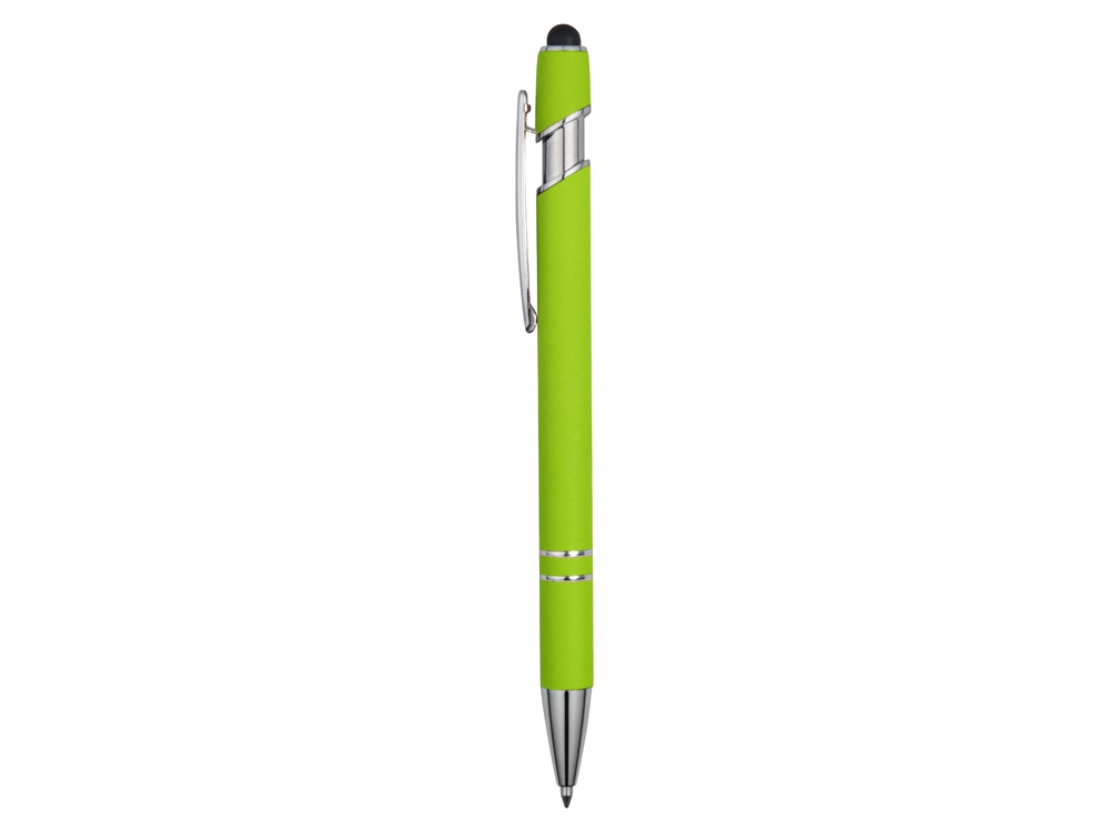 Ручка металлическая soft-touch шариковая со стилусом Sway, зеленое яблоко/серебристый