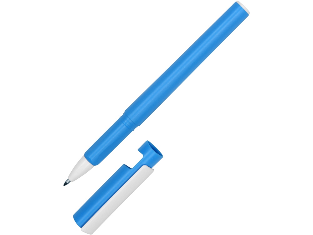 Главная ->Корпоративные подарки и рекламные сувениры на складе -> Ручки под логотип -> Ручки пластиковые -> Ручка пластиковая шариковая трехгранная Nook с подставкой для телефона в колпачке, голубой/белый