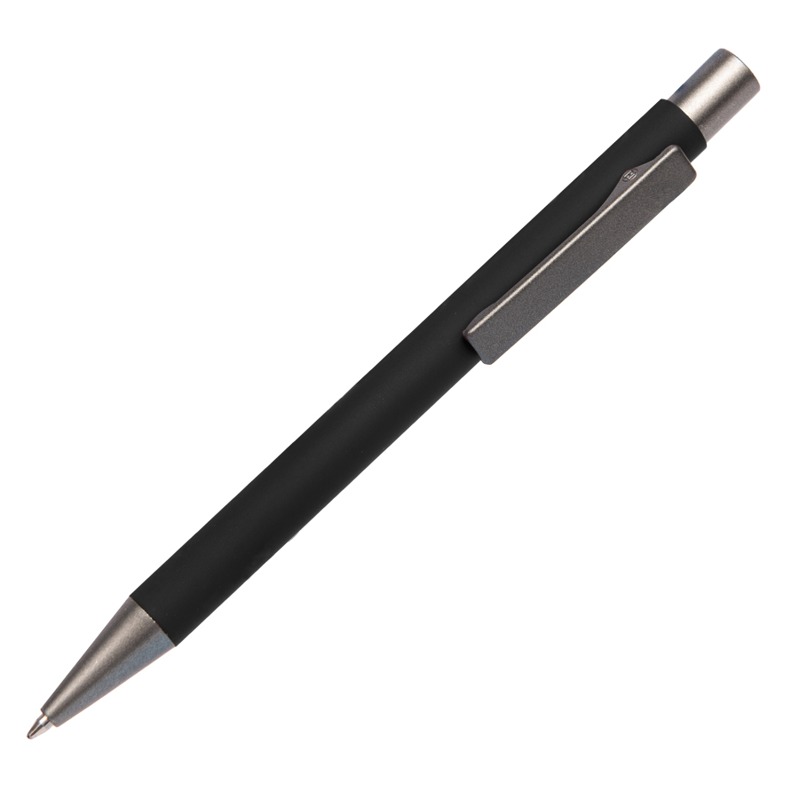 корпус данной модели отлично подойдут для нанесения вашего логотипа. • Pantone, близкий к Black • Размер 140*10 мм • Корпус из алюминия с покрытием soft touch • Металлический клип-прищепка серого цвета • Пластиковые носик и кнопка в цвет клипа • Нажимной механизм подачи стержня • Пулевидный пишущий узел 1.0 мм • Длина линии письма 1000 м • Чернила Dokumental. Цвет чернил синий • Сменный стержень Parker type • При гравировке вскрывается натуральный цвет алюминия, который может быть либо более белый, либо более серого оттенка. Результат гравировки зависит от настроек оборудования!