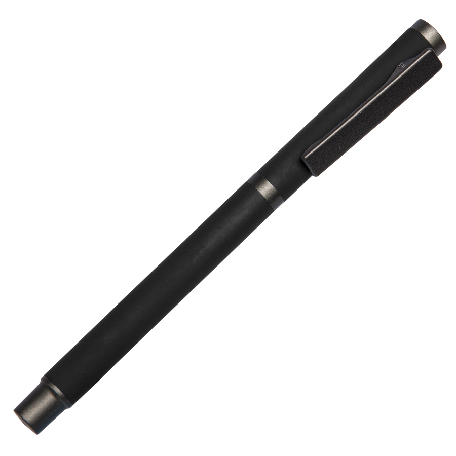 и колпачок из алюминия с покрытием soft touch • Металлический клип-прищепка серого цвета • Пластиковые носик и заглушка в цвет клипа • Пулевидный пишущий узел 1.0 мм • Длина линии письма 1000 м • Чернила Dokumental. Цвет чернил синий • Сменный стержень Parker type • Подложка вскрывается зеркалом