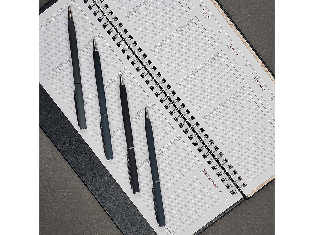Автоматическая металлическая ручка Bruno Visconti серии Palermo однотонного цвета порадует любителей всего изящного и утонченного. Покрытие корпуса Soft Touch гарантирует дополнительный комфорт в работе с ней. Стержень легко выдвигается благодаря поворотному механизму. Синие пигментные чернила Dokumental (Германия) и пишущий узел Premec (Швейцария) обеспечивают качественное и мягкое письмо.