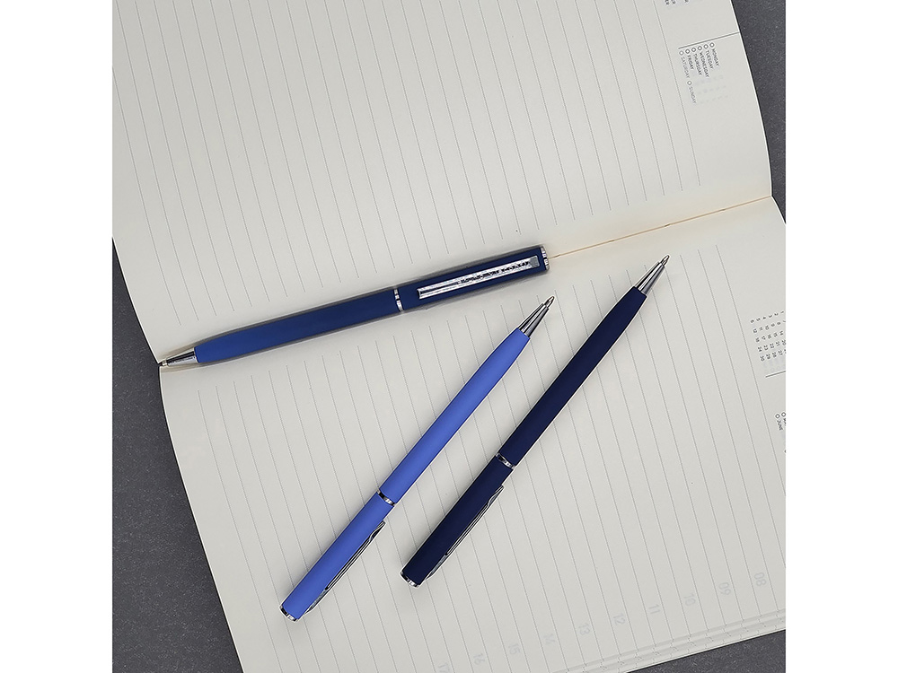 Главная ->Корпоративные подарки и рекламные сувениры на складе -> Ручки под логотип -> Ручки металлические -> Ручка шариковая автоматическая BrunoVisconti® PALERMO цвет корпуса синий, soft-touch, 0.7 мм