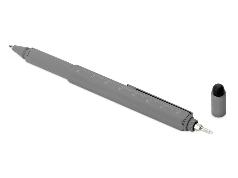 Ручка шариковая металлическая Tool, серый. Встроенный уровень, мини отвертка, стилус с логотипом компании - отличный способ заявить вашу корпоративную идентичность.