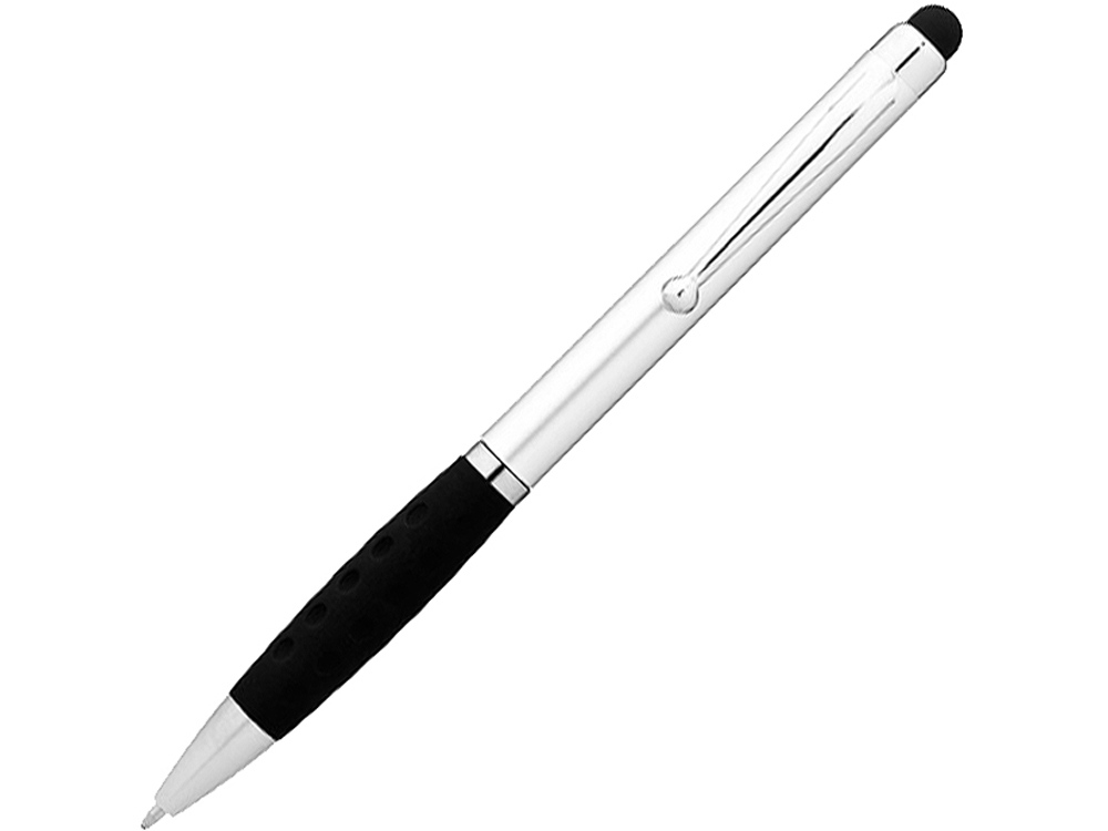 Ручка-стилус шариковая Ziggy синие чернила, серебристый/черный с логотипом компании - отличный способ заявить вашу корпоративную идентичность.