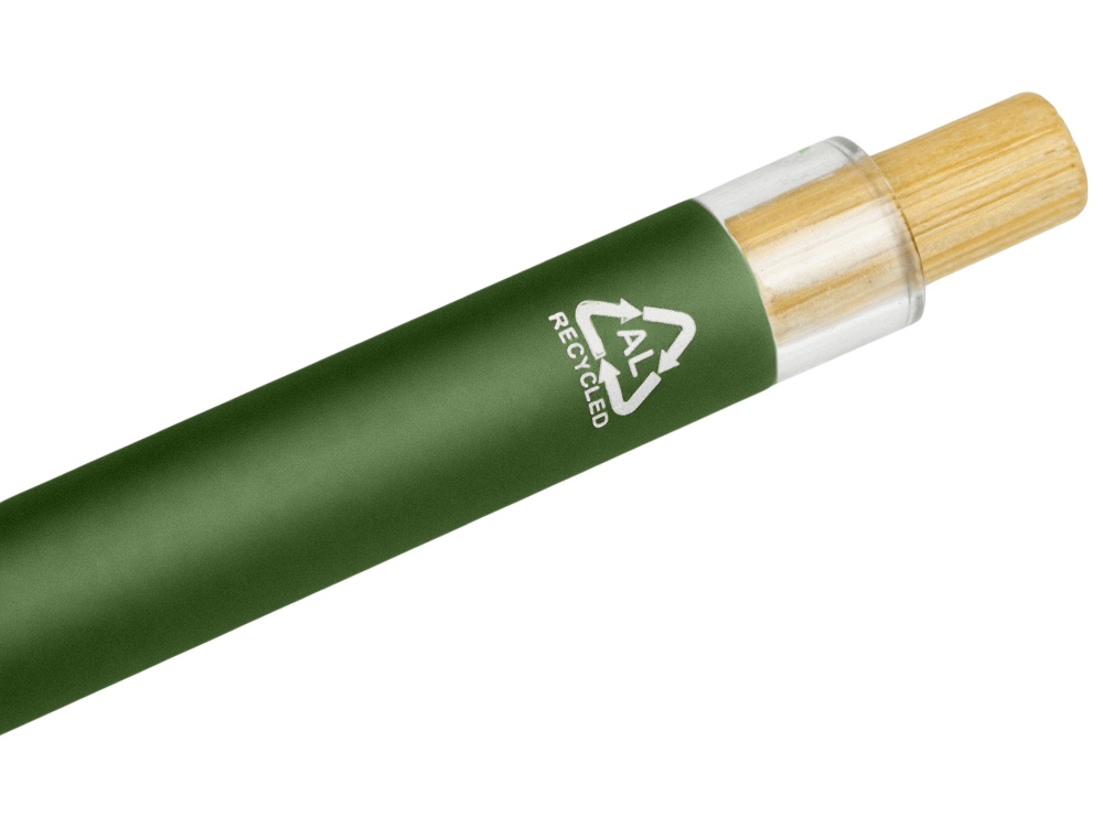 Ручка из переработанного алюминия Blossom, зеленый с логотипом компании - отличный способ заявить вашу корпоративную идентичность.
