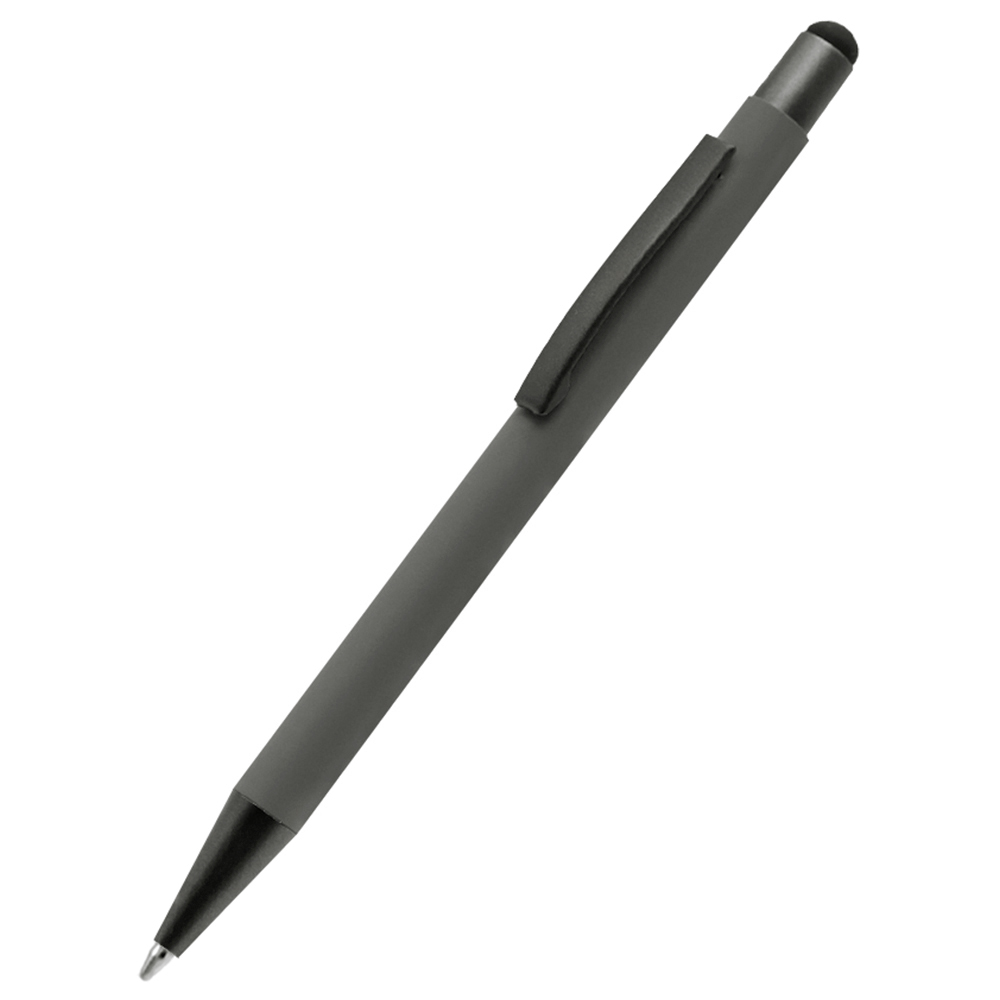 Бархатистая на ощупь ручка Story сотф-тач сделана из металла. Синие чернила, имеет стилус для взаимодействия с портативными устройствами. Толщина пишущего узла 1 мм, длина письма рассчитана на 700 м. Цвет по PANTONE® (максимально приближен): COOL Gray 6 C.