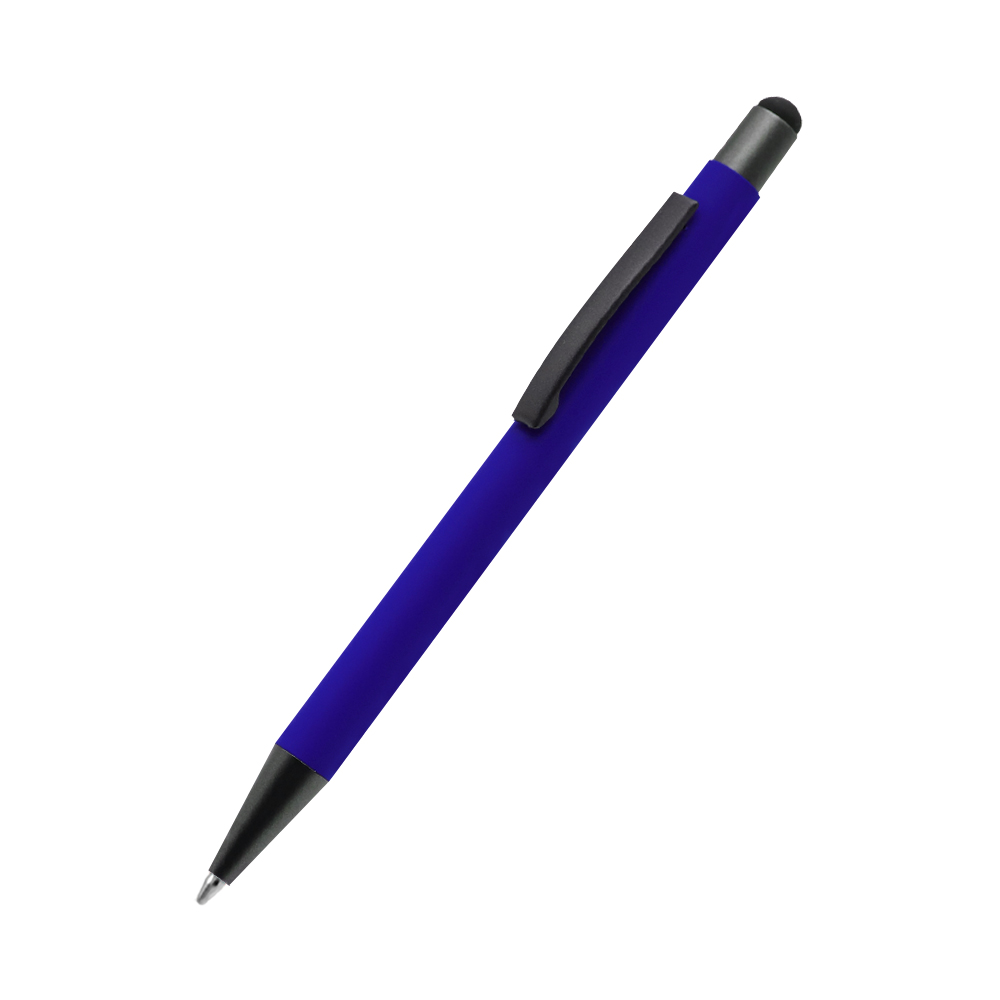 Бархатистая на ощупь ручка Story сотф-тач сделана из металла. Синие чернила, имеет стилус для взаимодействия с портативными устройствами. Толщина пишущего узла 1 мм, длина письма рассчитана на 700 м. Цвет по PANTONE® (максимально приближен): 7687 C.