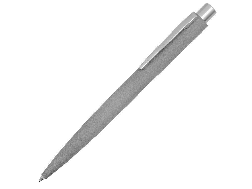 Автоматическая шариковая ручка с поверхностью, имитирующей бетон или камень. Металлический клип и нажимная кнопка матовые хромированные.